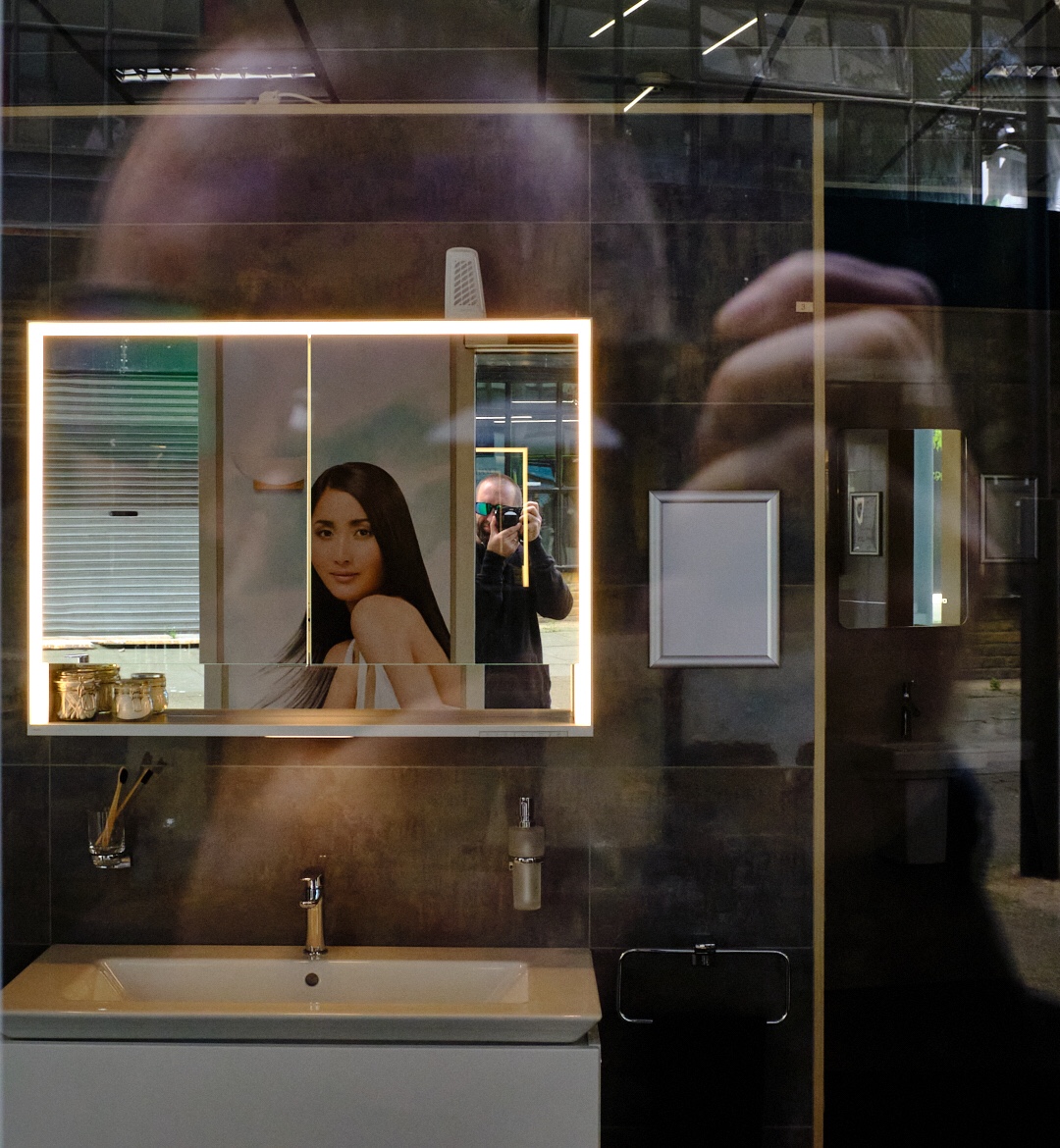 And your notice they are in colour I intentionally set myself a goal to shoot in colour. This area I visit is nine times out of ten dark with shadows and pools of light during the morning sun. I’ve walked past this shop numerous times and tried to capture people’s reflections within the shop where shower displays are.
