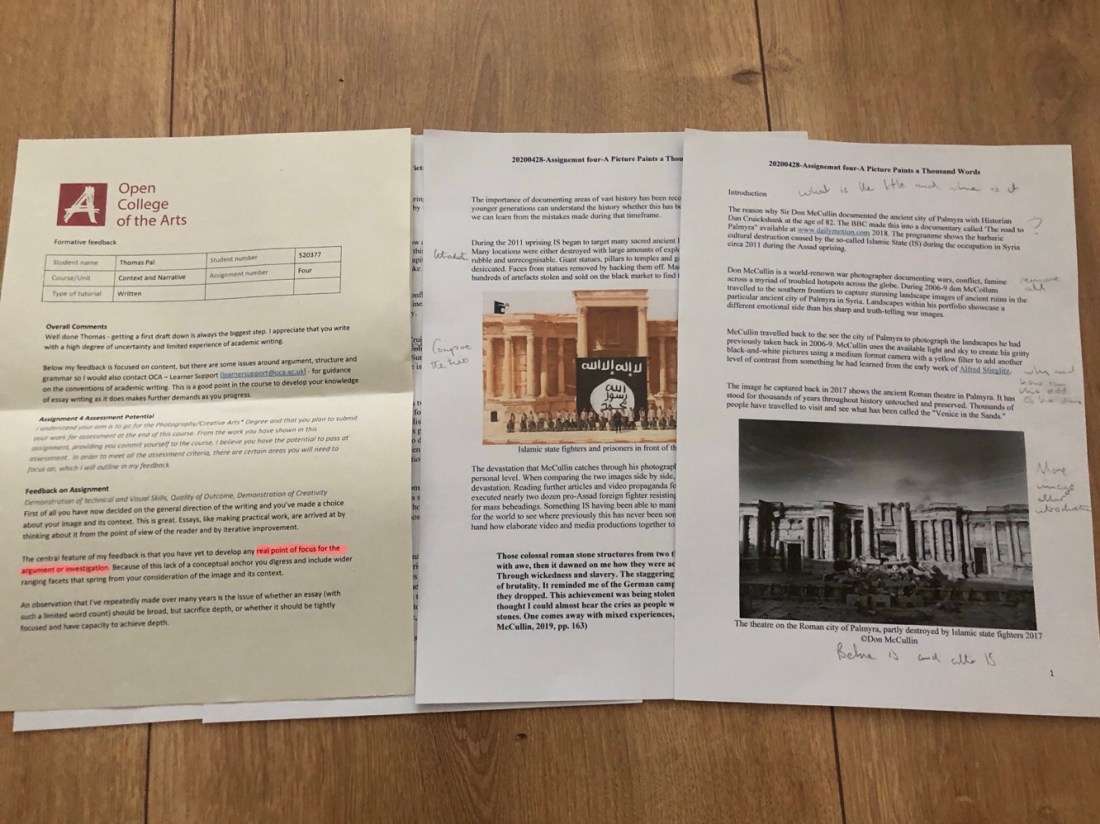 Looking back now, I should have waited and thought about this assignment before submitting my draft. With both the feedback and the essay, I now see, I’ve not made the connection with the pictures or managed to construct any form of argument.